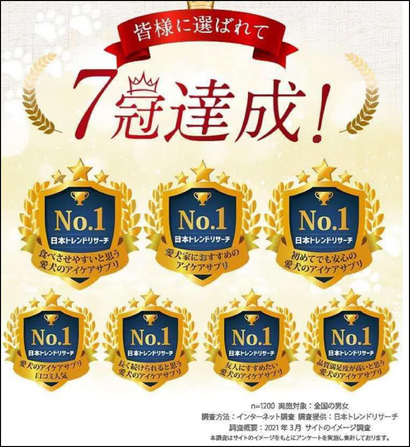 また、問題となるNo.1表示では実際はWEBサイトのイメージに対する回答などに
