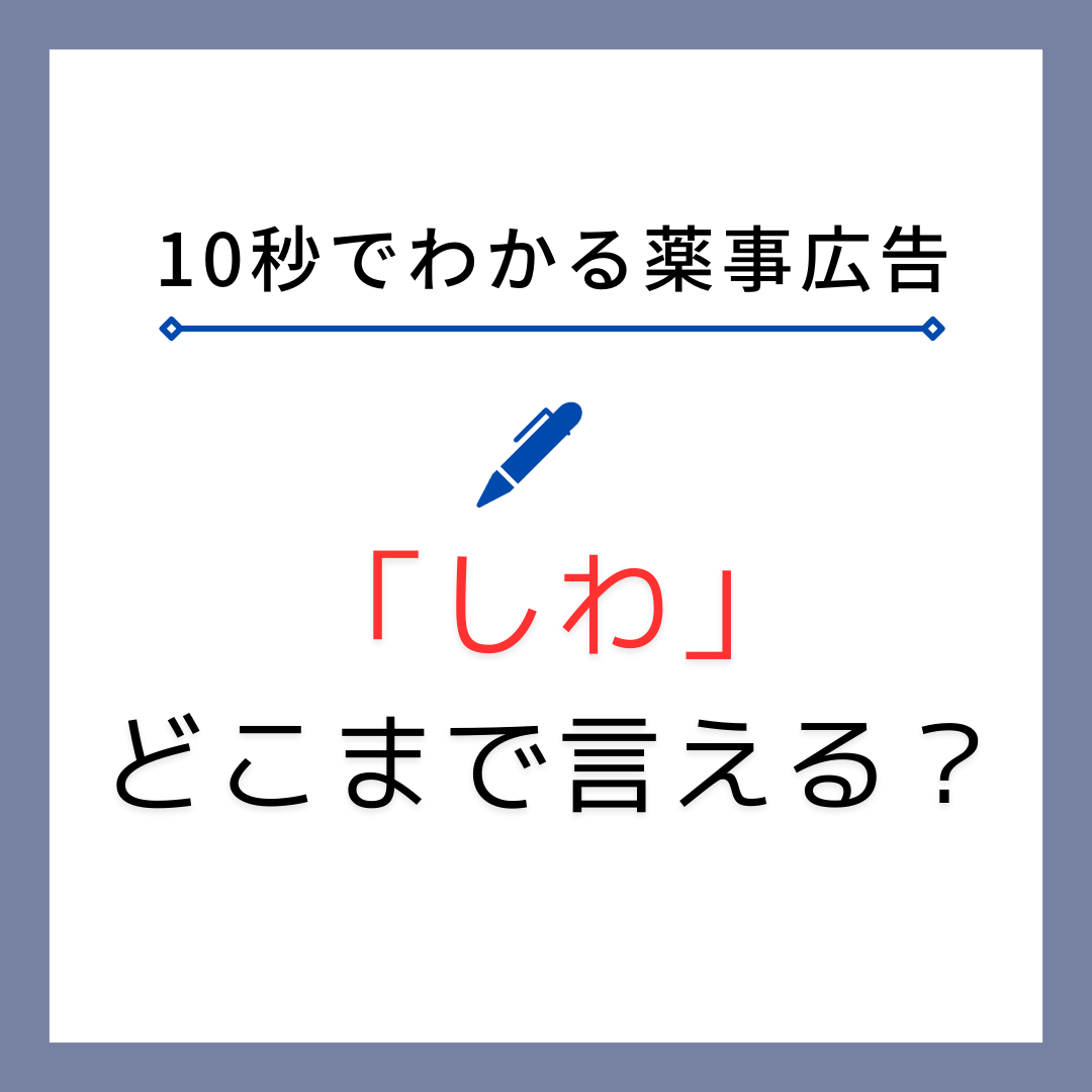 化粧品等の広告やパッケージで「しわ」ってあふれていますよね。 どれも同じじゃないの?と思われるかもしれませんが、広告として表現できる範囲は明確に決まっています。 一般消費者からするとわかりくい表現や区別ばかり…そこを逆手にとって、悪質な広告主が騙すように広告しているのも事実です。 今こそ、一般消費者の皆さまにも正しく商品選択していただくために知っていただきたくこのテーマでお伝えしています。 化粧品分類は「乾燥小じわを目立たなくする」 ▶化粧品分類は「乾燥小じわを目立たなくする」しか標ぼうできません。あくまでも、潤いを与えることにより一時的に小じわを目立たなくするっていう効能効果です。一時的かい!と言いたくなりますが、化粧品では薬理効果は広告できません。 どのような化粧品でも標ぼうできるわけではなく、日本香粧品学会の定める試験かそれと同等以上の試験で効能効果があるデータが取れたものに限るので、56効能の中では特殊な効能効果ではあります。 また、有効成分も配合されていないため、シワ改善も期待できません。 医薬部外品は「シワ改善」 ▶一方、医薬部外品はシワ改善効果のある有効成分が配合されているので堂々とシワ改善と広告できます。 お高いですが、本当にシワ改善にアプローチできるのは医薬部外品だけなので、商品選びのポイントにしていただけると幸いです。 2017年に日本で初めてシワ改善の承認を得のリンクルショットでした。 その後後発の製品が出ていますが、やはりシワ改善のパイオニアとして名高いのがPOLAさんです。 https://www.pola.co.jp/special/e/wrinkleshot-medical-serum/pc/?utm_source=microsoft&utm_medium=cpc&utm_content=151344517_483424482_1233653071525800_77103451383064_kwd-77103601306055:loc-96&utm_campaign=wrsskv&utm_term=be_POLA%20%E3%83%AA%E3%83%B3%E3%82%AF%E3%83%AB%E3%82%B7%E3%83%A7%E3%83%83%E3%83%88&argument=XMHbrRLH&dmai=ms_bkw_wrssskv&msclkid=581a8be69fb21e1ae787ed9a5b70f004 「しわ」に対する効果の範囲を明確に知っておこう! 広告する側は、化粧品と医薬部外品の効能効果がごちゃ混ぜにならないように注意が必要です。 日本化粧品工業会の広告審査会では毎回のように「しわ」に関する広告が取り上げられており、目を付けられやすい状況です。 購入される側は、正しく効能効果を知って、化粧品を買うのか、医薬部外品を買うのか、 目的に応じた商品選択をしていただきたいと思います。 「しわ」の広告表現の注意点 ・「乾燥小じわを目立たなくする」および「シワ改善」の使用前後の写真や図面は認められない。 ・化粧品分類と医薬部外品分類を明確に分けて広告しなければならない。 (医薬部外品の製品に、「乾燥小じわを目立たなくする」も表記することもNG) などなど、「しわ」訴求は非常にデリケートな広告表現です。 化粧品の効能効果の表現について不安に思ったらプロにご相談を! https://kyk-lab.com/news-column/923/ くすみ表現についてはこちらもご参照ください。