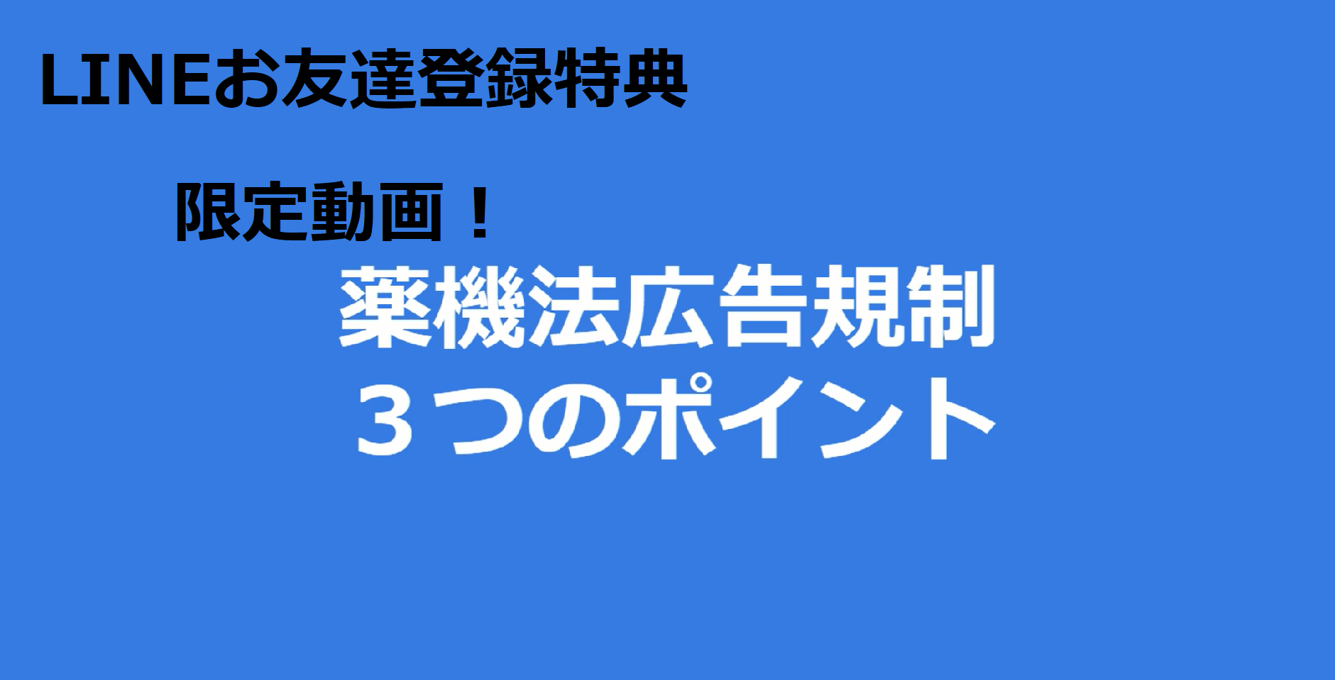 ☑薬機法のチェックをしていて気になることがある… ☑薬事広告について、不安に思っていることがある… ☑一人で薬事チェックをしているがあっているのか気になる… そんな思いで薬事広告のチェックを行っている方も多いはず。 薬機法や景品表示法に関わる広告について、気軽に問い合わせできる窓口があります。 京都薬事広告ラボの公式LINEはこちらです。 今なら、ご登録特典として、限定動画「薬機法の広告規制~3つの重要ポイント~」をプレゼントしています。 薬事広告に関わる皆さまに、ぜひ知っておいていただきたい内容(約3分)となっております。 ※予期せず動画配信を停止する可能性もあるため、早めのご登録と動画視聴をおすすめしています。 LINEお友達にご登録いただければ、個別にチャットでご相談等をお受けできるほか、 定期的に薬事や広告に関して、皆さまのお役に立つ情報もお届けしております。 ぜひ、この機会にご登録ください!!